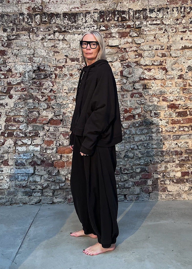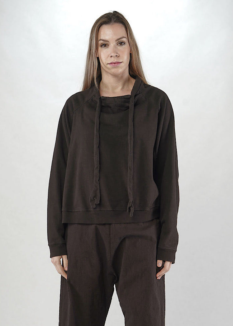 A relaxed-fit pullover from RUNDHOLZ MAINLINE, crafted in a medium-weight, sweatshirt-style Cotton for structure and comfort. Designed with an oversized silhouette, it features a drawstring funnel neckline, dropped shoulders and wide sleeves, finished with ribbed Cotton trims at the cuff and hem. Padded toggle details add a sculptural edge that nod to the season’s monstrous forms.