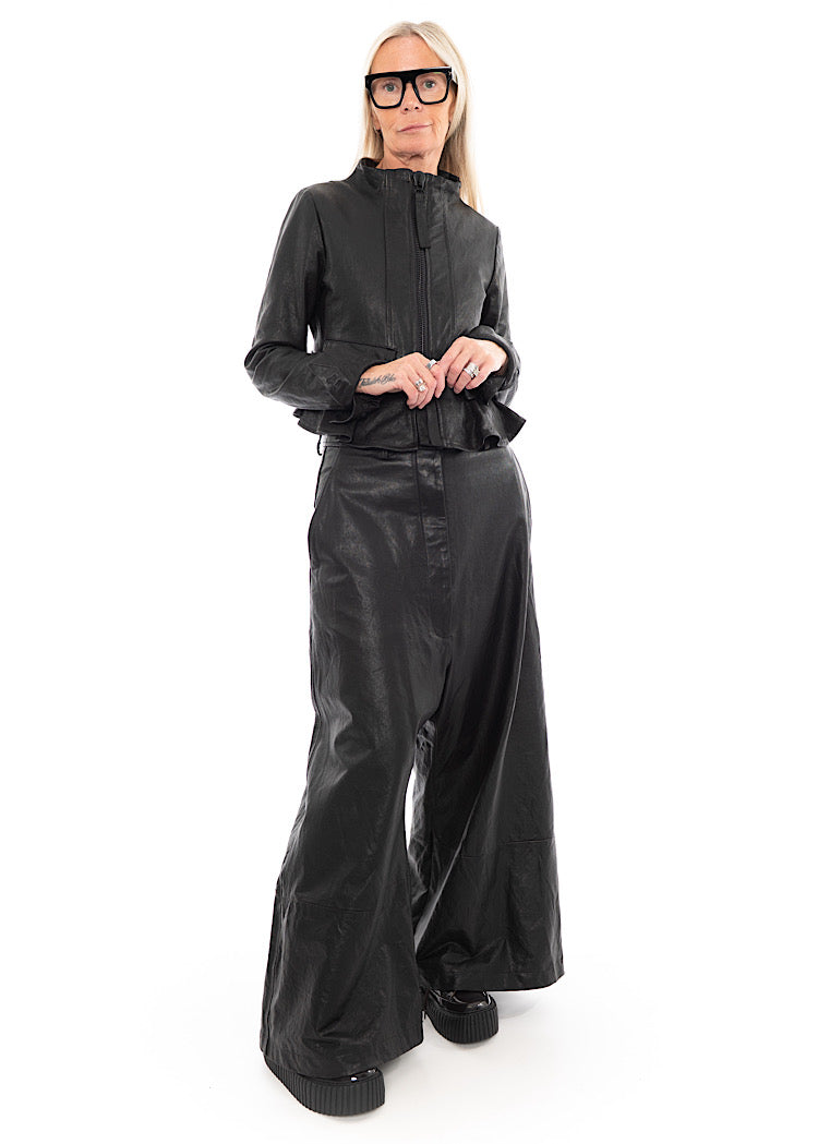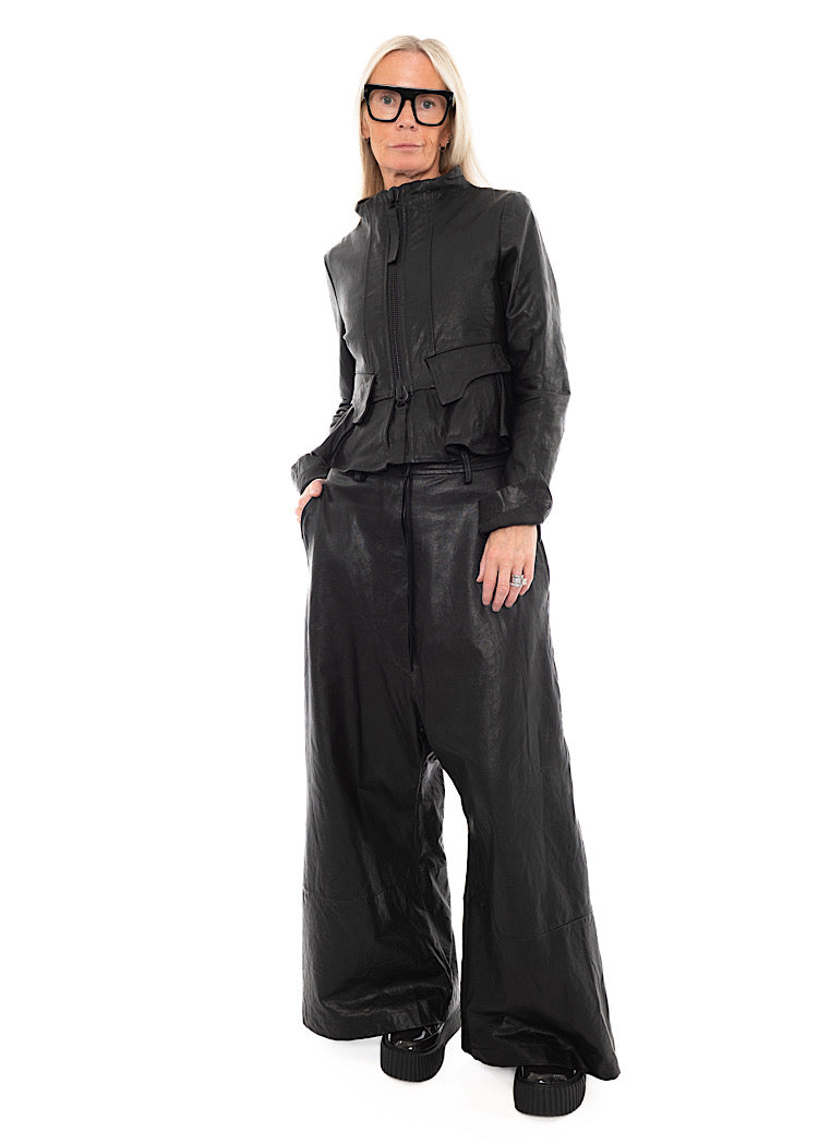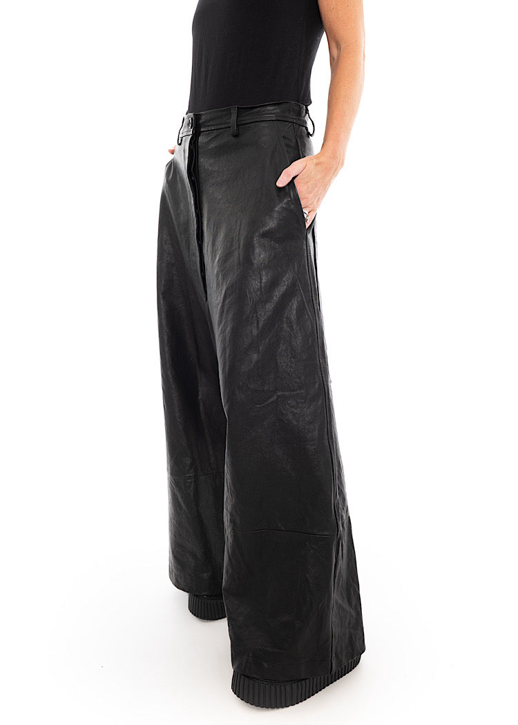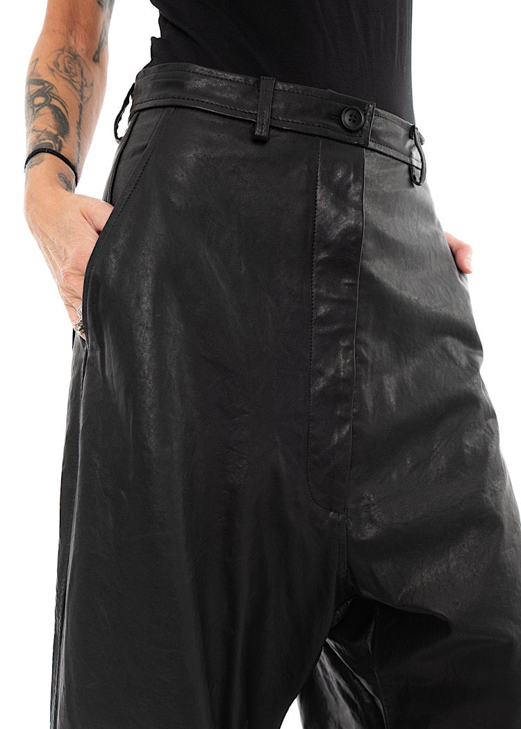 EDITOR'S NOTE : Elevate your wardrobe this Autumn/Winter with a pair of these RUNDHOLZ MAINLINE leather Trousers.The wide leg and subtle dropped crotch give them that signature sculptural feel, while the crinkled leather adds subtle texture without overwhelming. They’re bold but incredibly wearable—just add a knit or the matching leather jacket for a look that’s strong, simple, and unmistakably RUNDHOLZ.