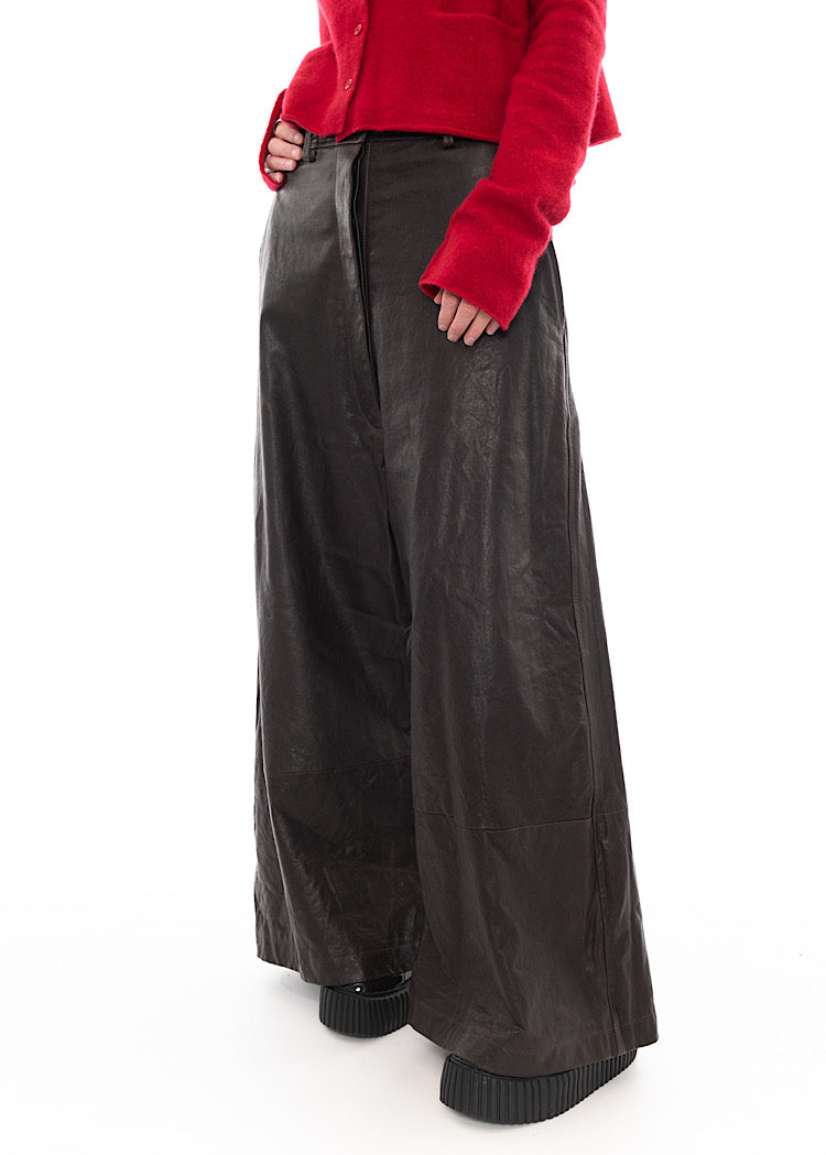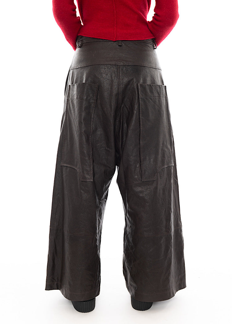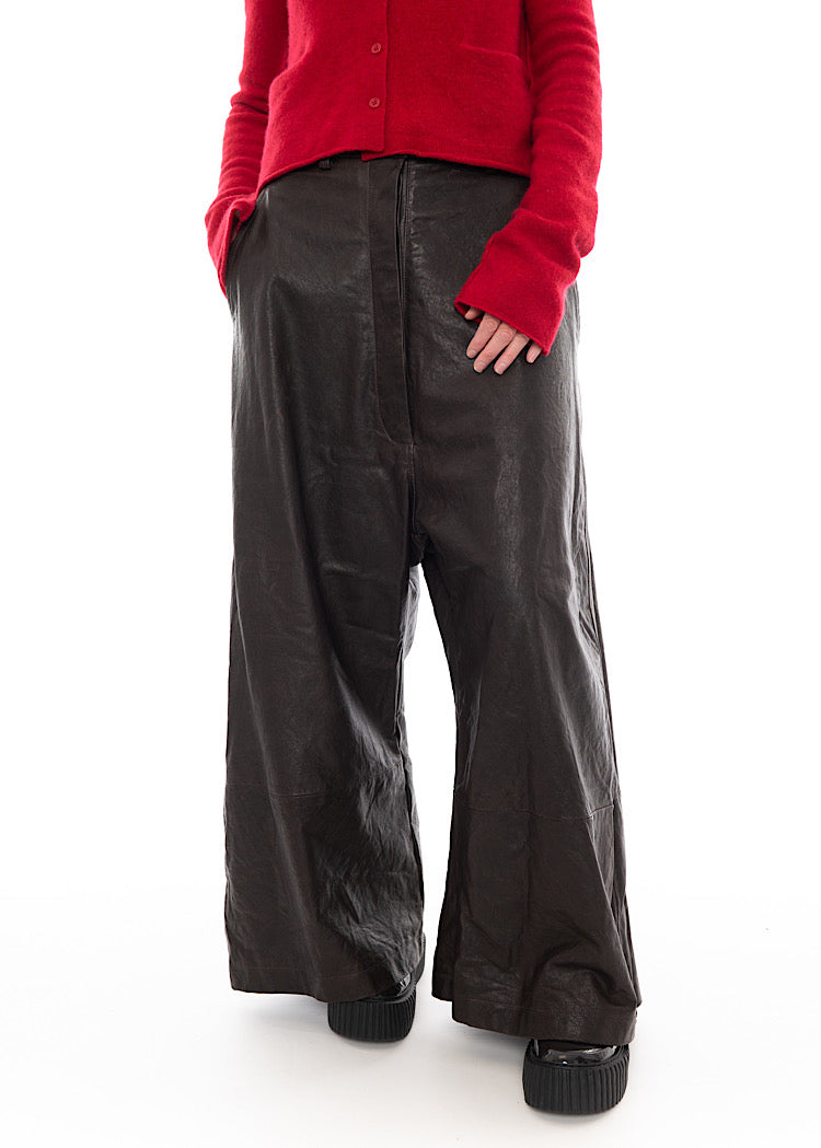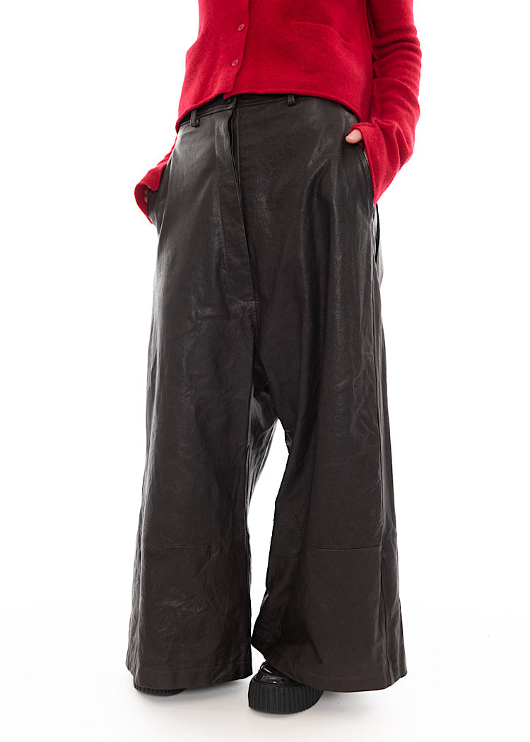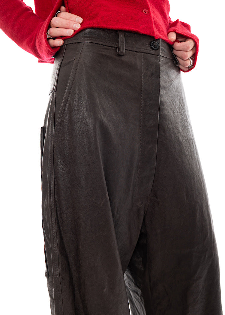 EDITOR'S NOTE : Elevate your wardrobe this Autumn/Winter with a pair of these RUNDHOLZ MAINLINE leather Trousers.The wide leg and subtle dropped crotch give them that signature sculptural feel, while the crinkled leather adds subtle texture without overwhelming. They’re bold but incredibly wearable—just add a knit or the matching leather jacket for a look that’s strong, simple, and unmistakably RUNDHOLZ.