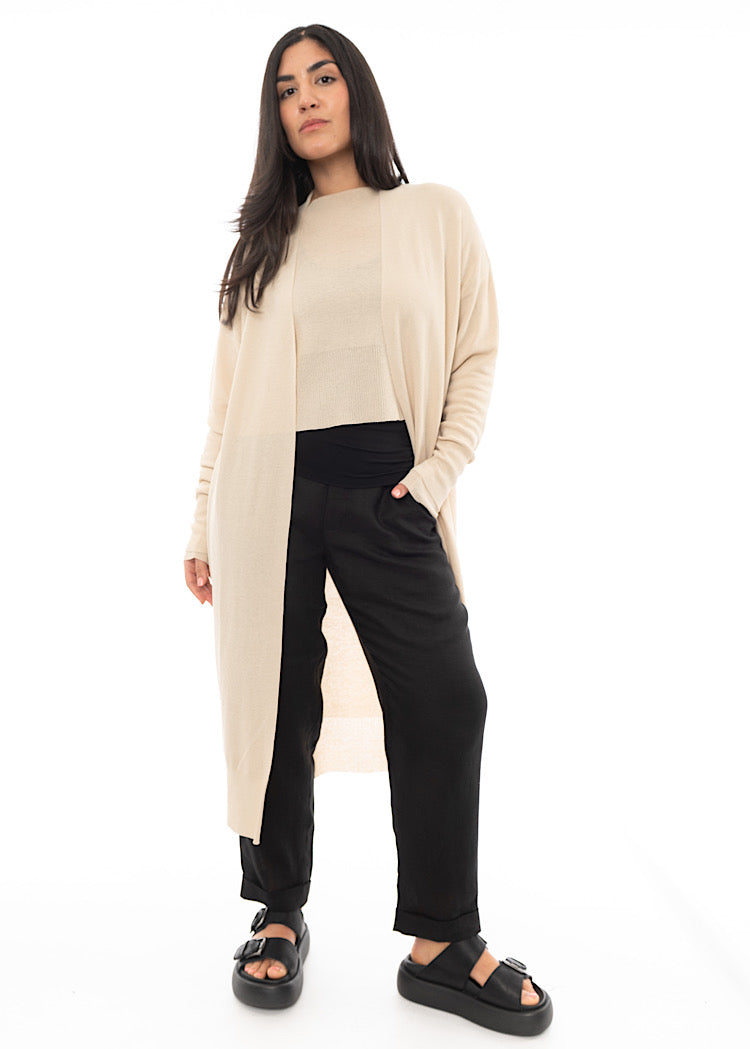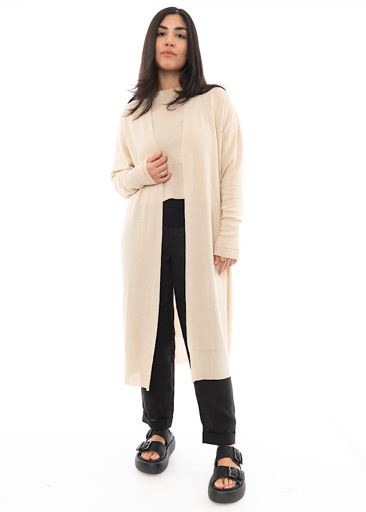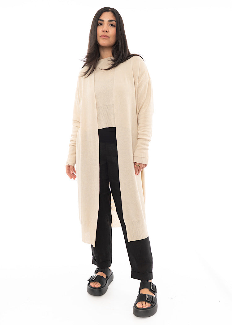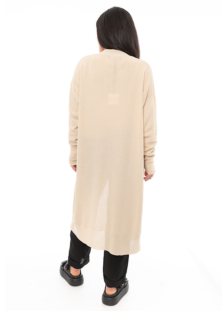 A lightweight, long length Cardigan from SARAH PACINI SS25. Featuring ribbed detailing at the hems and cuffs, finished with a subtle tulip shape.
