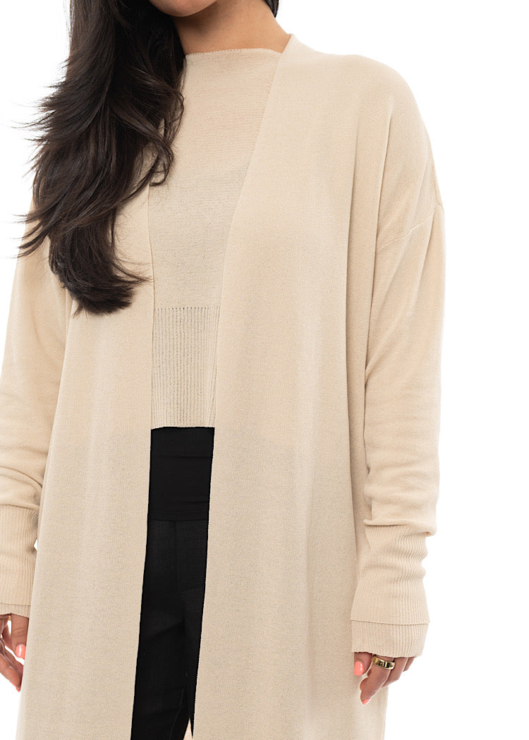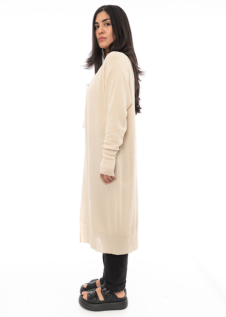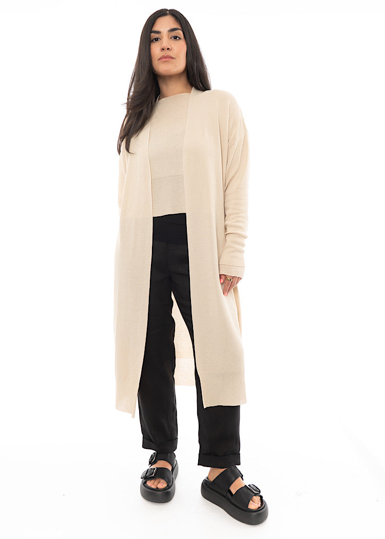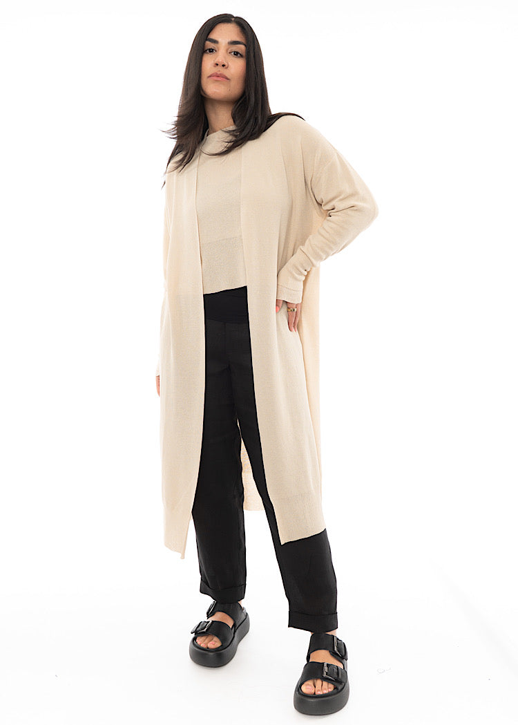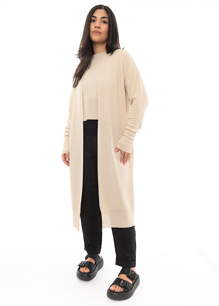 A lightweight, long length Cardigan from SARAH PACINI SS25. Featuring ribbed detailing at the hems and cuffs, finished with a subtle tulip shape.